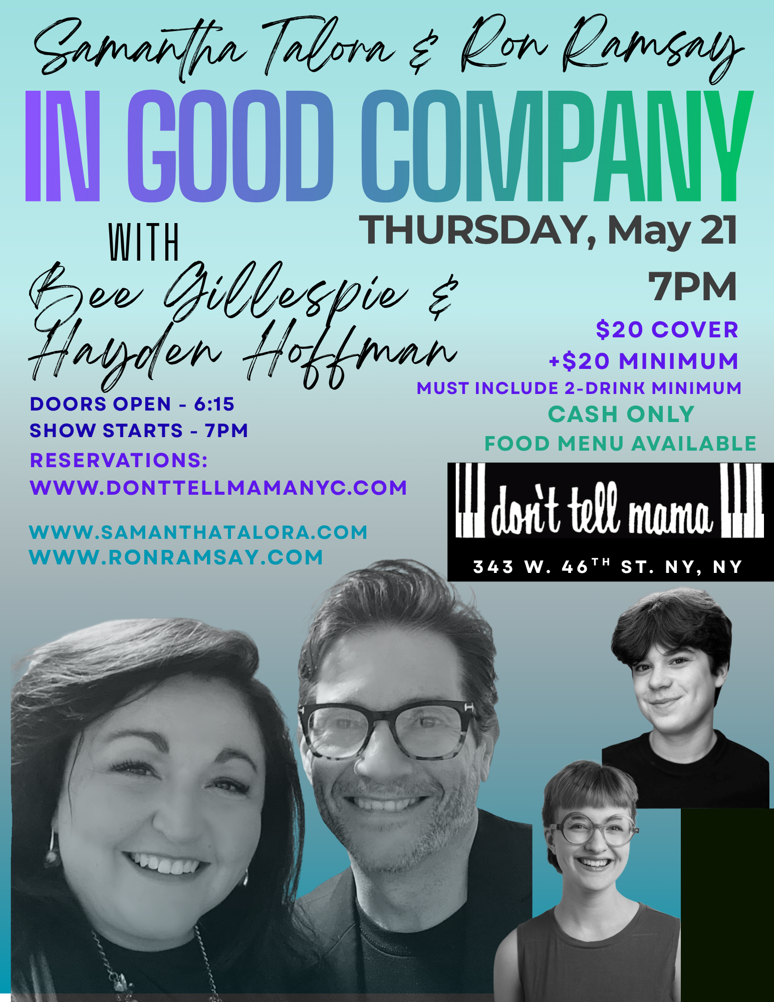 Ron has enjoyed a 13-year collaboration with his singing partner Samantha Talora. In 2025, their solo and duo cabaret performances—Friends in Harmony—were presented at Don't Tell Mama to enthusiastic and praised reviews, celebrating their musical chemistry, humor, and shared storytelling.